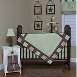 BD-MEADOW Features: -Set includes wall hanging / quilt, crib skirt, fitted crib sheet, bumper, window valance, diaper stacker, three wall hangings and musical mobile. -Sage green and chocolate brown micro suede. -Perfect for a gender neutral nursery. -Complete nursery bedding set including musical mobile. -Machine washable.