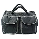 VB001L-BG Size: Large, Color: Black with Gray Trim Pictured in Black with Gray TrimFeatures: -Available in Black with Gray Trim, Metallic Gray (Silver), Metallic Gold and Metallic Plum colors. -Water-repellant nylon outer shell and lining. -Zippered door system allows easy access to interior. -Dual exterior pockets provide quick access to phones and keys. -Built-in zippered case. -Mesh pockets line interior. -Detachable shoulder strap. -Comes complete with changing pad, bottle holder, and lunch box. -Available in small and large sizes. -Small dimensions: 10.5'' H x 15'' W x 8'' D. -Large dimensions: 12'' H x 17'' W x 9'' D.