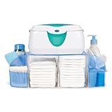 Reporting for diaper duty just got organized!Perfect for dresser tops and changing tables. Keeps diapering essentials organized and handyNow your shelf or tabletop can look neat and clean all the time with our sleek diaper organizer. It holds diapers, lotions, diaper disposal bags and more. The flat top is the perfect spot to place your wipe dispenser or wipe warmer. And, the side bins are removable if you have space limitations. We even include 12 scented diaper bags to help your diapering space smell fresh and clean.Removable side bins organize lotions, ointments and more.Easy access compartment hold up to 20 diapersFull size: 16"w x 5"h x 9"dWipe dispenser/warmer not included. Colors and styles may varyIt's the little things®Questions: Call (800) 344-BABYMade in China